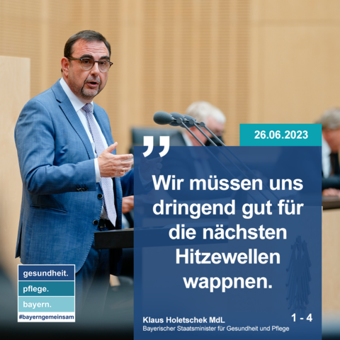 Bayerns Gesundheits- und Pflegeminister Klaus Holetschek hat die Pläne von Bundesgesundheitsminister Lauterbach begrüßt, die Menschen besser vor Hitze zu schützen.