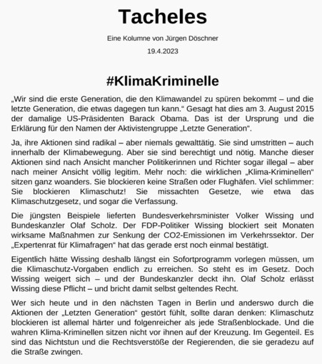 Jürgen Döschner: „Die einen blockieren Straßen - die anderen blockieren #Klimaschutz.