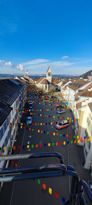 Die #fasnacht rückt näher. Heute wurde unser Städtchen #Klingnau #Schweiz dekoriert. Die Fahnen wehen nun im Wind, die Masken hängen und der obere Stadtbrunnen ist auch eingekleidet.