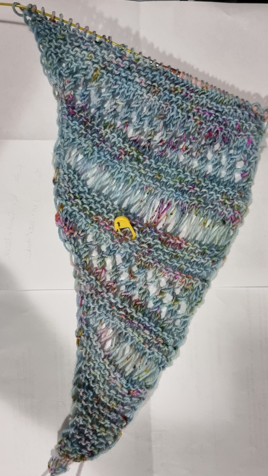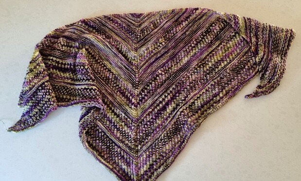 #knitting #fibreArts #Knitsodon #knittedShawl #handDyedYarn #knittersOfMastodon @knitting #knit #photo
