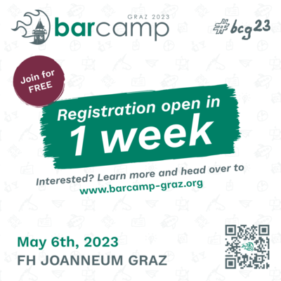 [DE] π’ Nur noch eine Woche bis zum Registrierungsstart des barcamp Graz 2023! π Verpass auf keinen Fall die Chance, gemeinsam zu lernen, zu netzwerken und Ideen mit Gleichgesinnten auszutauschen. π€