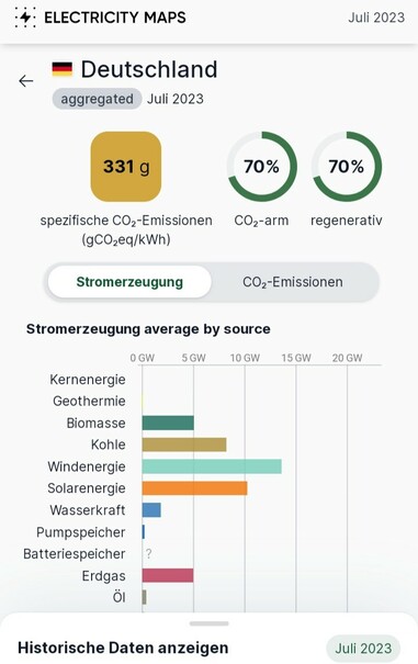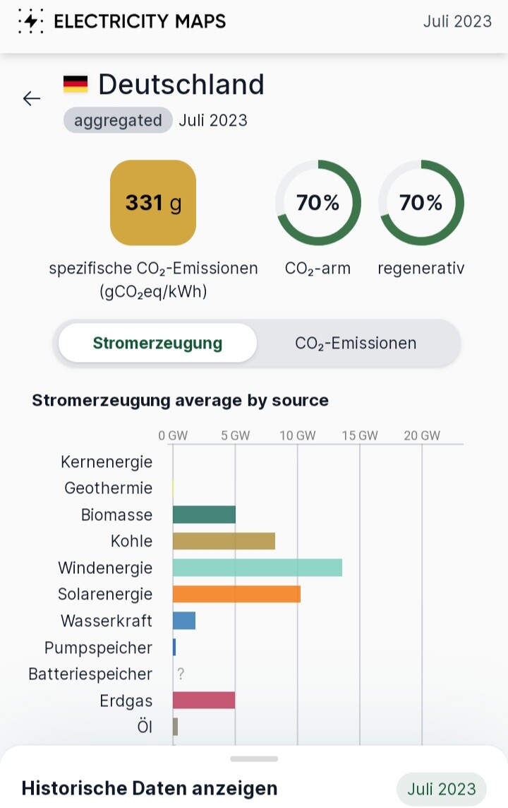 • Das Gesamtergebnis ist mit 70% regenerativ produziertem Strom ist auch im Juli deutlich besser als letztes Jahr