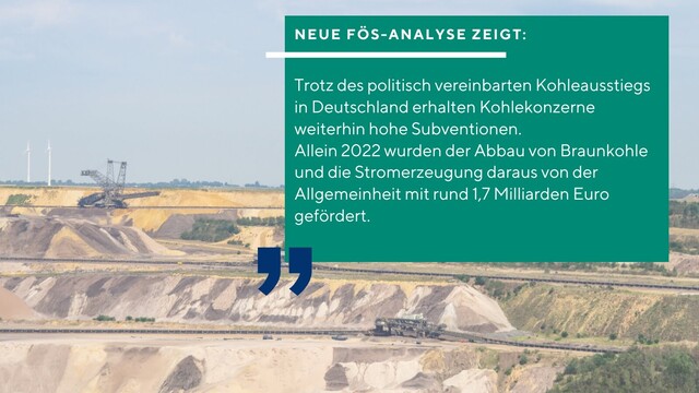Trotz des vereinbarten #Kohleausstiegs in Dtl. wurde Braunkohle 2022 mit ca. 1,7 Mrd. € 💰gefördert.