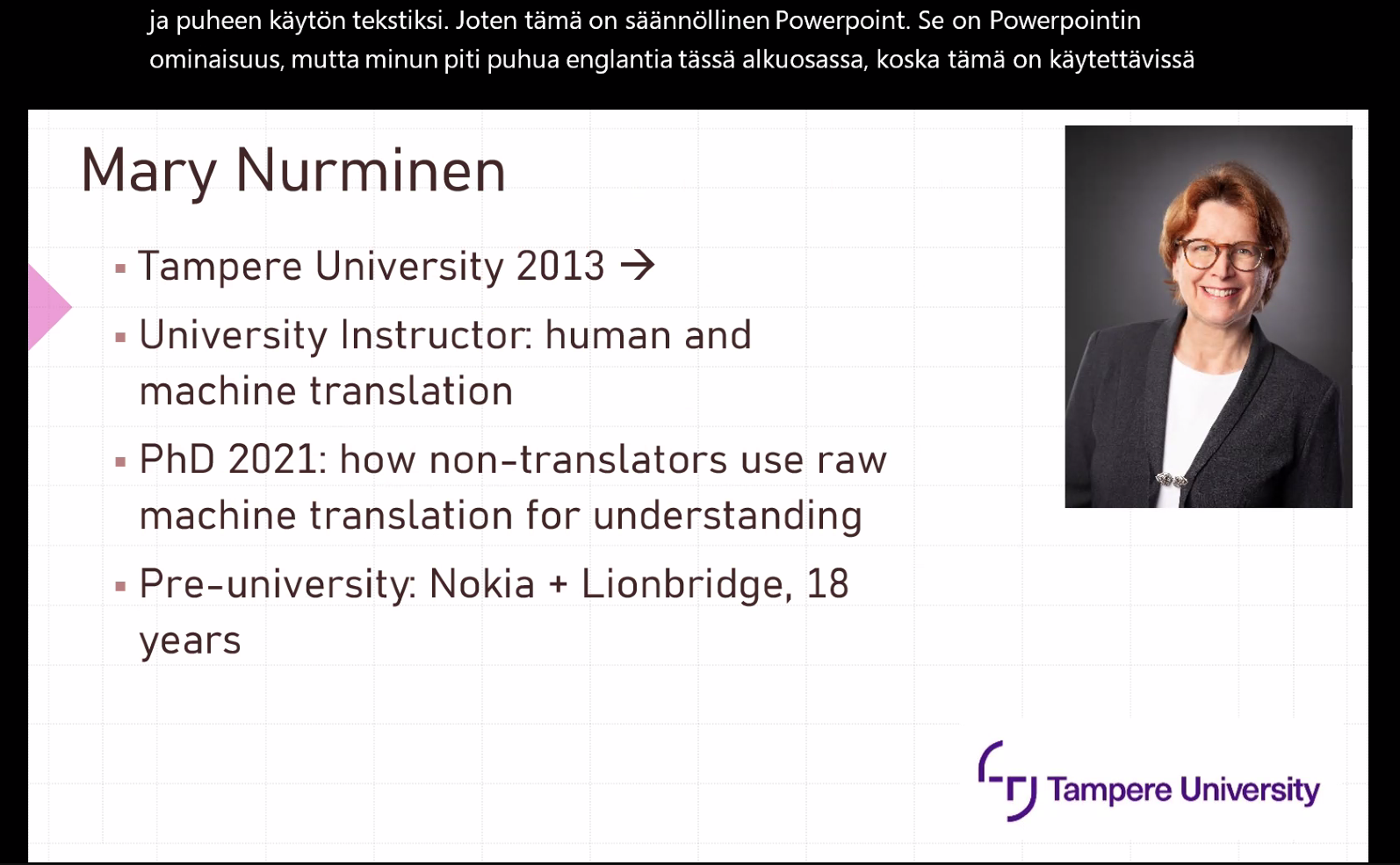Miten konekäännös voi edistää saavutettavuutta? Aihetta havainnollisti hyvin Mary Nurminen esityksessään Kansalliskirjaston seminaarissa, kun PowerPoint tekstitti ja käänsi hetken puhetta englannista suomeksi. Työkalua ei ole saatavilla suomesta englanniksi. Teksitys oli vähän hassua kieltä, mutta sisältö pääteltävissä. Tässä muutamia pointteja konekääntämisestä! #saavutettavuus #konekäännös