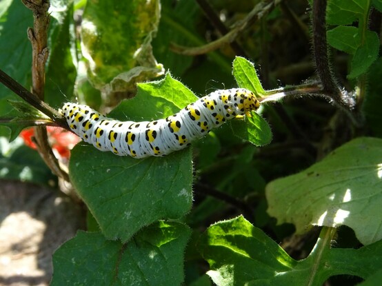 Eine ausgewachsene Raupe des #Königskerzen-Mönchs ist im Garten unterwegs, entdeckt in der Nähe der Wirtspflanze! #Garten #Naturfotografie #diekleinendinge #Schmetterling #Falter