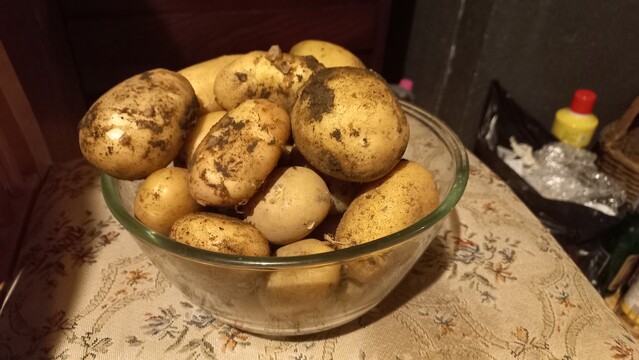 Letos jsem brambory vůbec nesázel, ale vyrostly zbytky z loňska. Vůbec jsem je nezaléval. Nic nezplesnivělo.