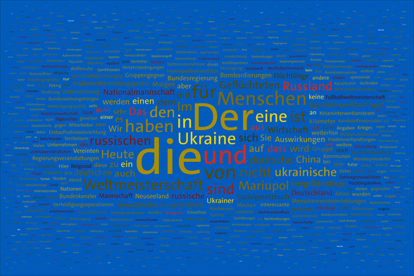 Tag 36 des #Konzeptkunst-Werks "Krieg in der Ukraine". Ein Werk zur Dokumentation der Berichterstattung über den Krieg in der Ukraine 2022 durch Wertung der Worte in Nachrichtensendungen und deren regelbasierte, farbliche Zuordnung zu den Kriegsparteien in bildlicher Form.