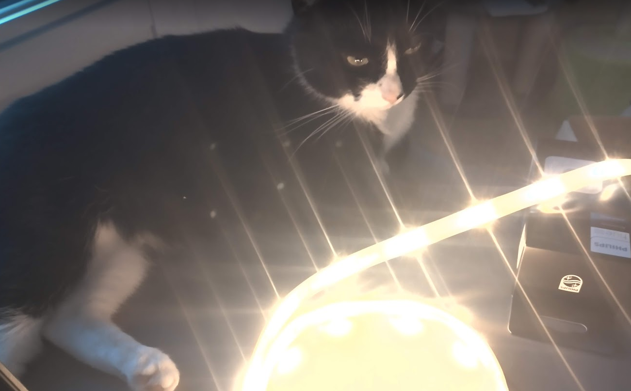 PitÀisi virittÀÀ jokin liiketunnistuspohjainen Hue lightstrip valaisusysteemi , tosin lisÀtwistinÀ, ettei syttyisi kissasta vaan vain isommista olioista. #Koodaus #SisustusHommat