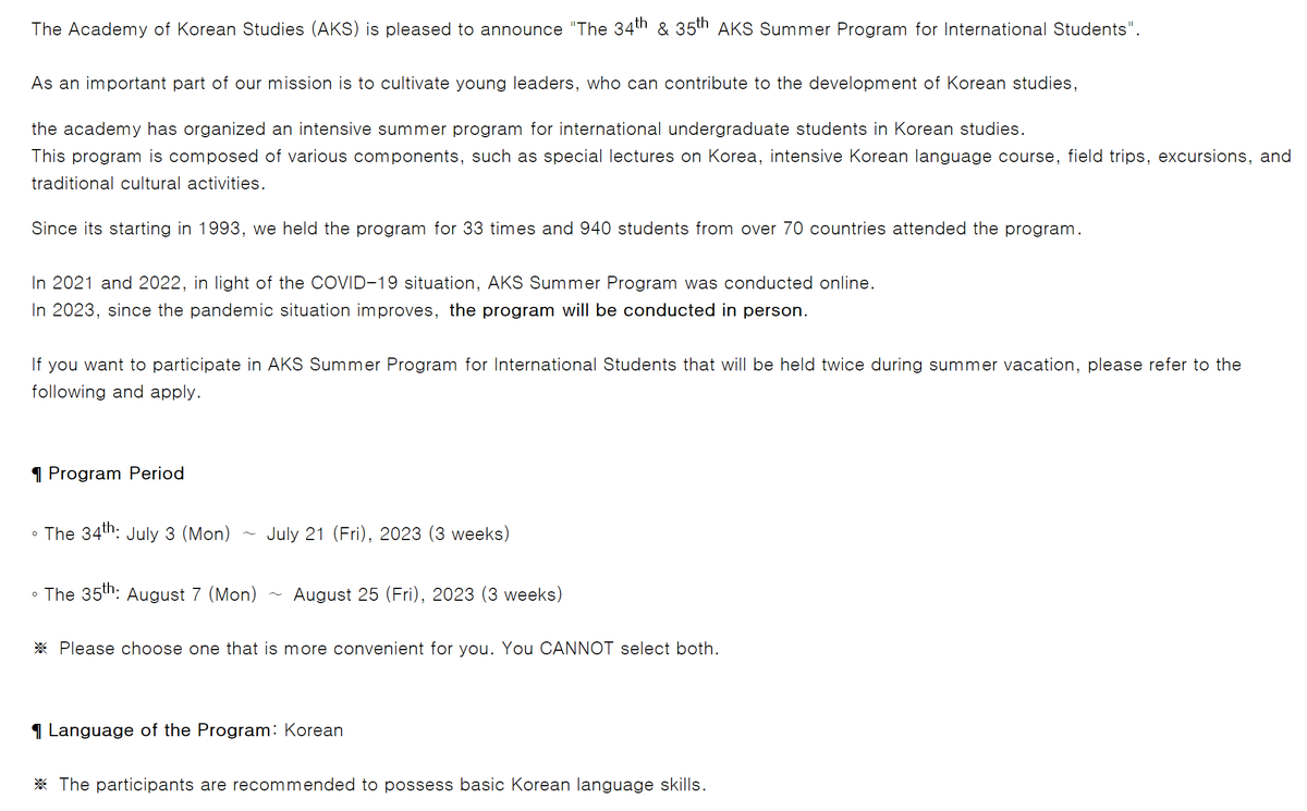 Are you an undergrad with at least some #KoreanLanguage ability? This 3 week summer program about #Korea is free (except flight ticket etc). It'd be good experience, good on your resume, too. Why not apply? #AKS #νκ΅νμ€μμ°κ΅¬μ