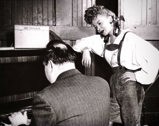 Ida Lupino with composer Erich Korngold on the set of “Escape Me Never” (1947)