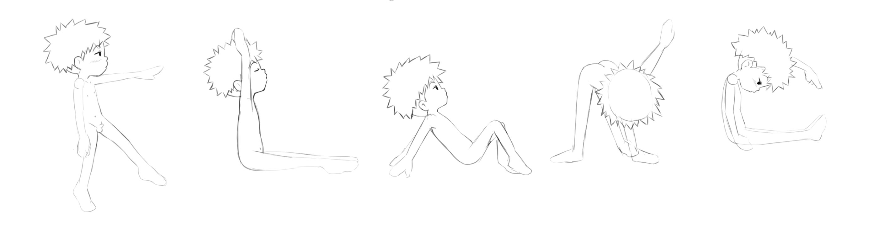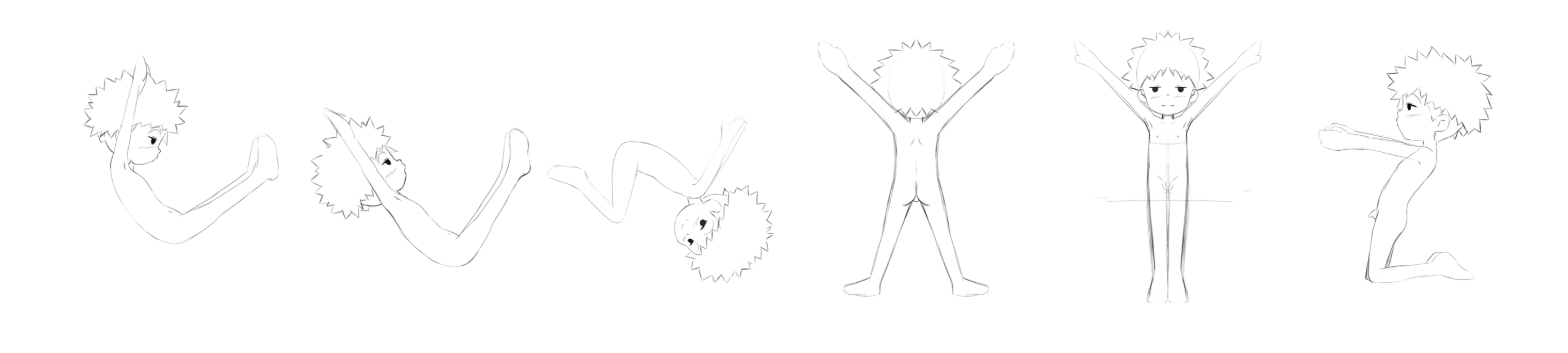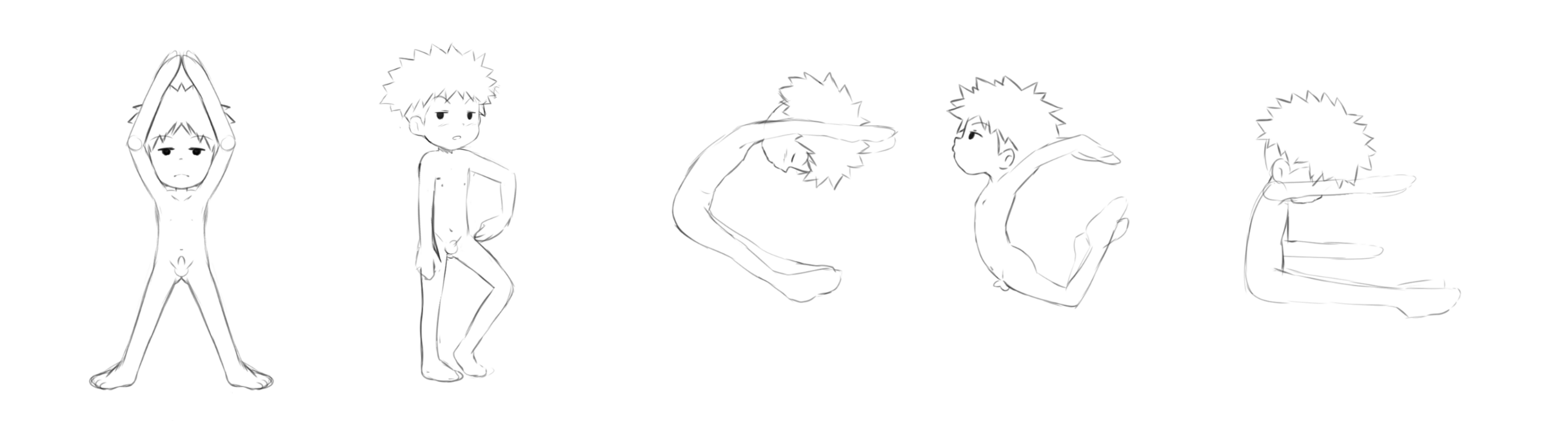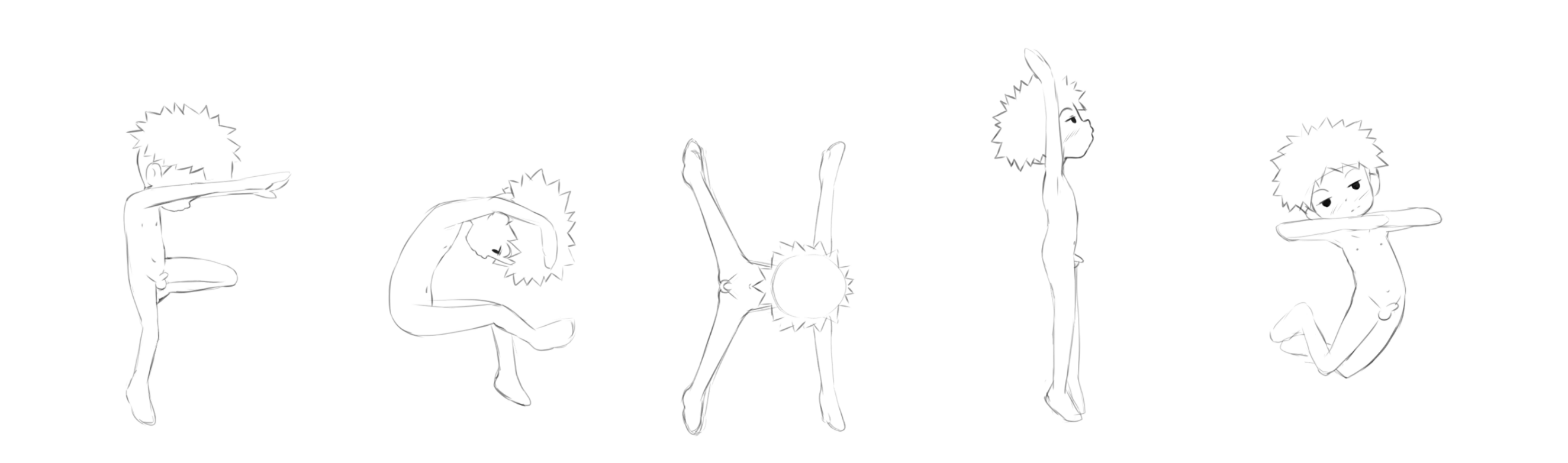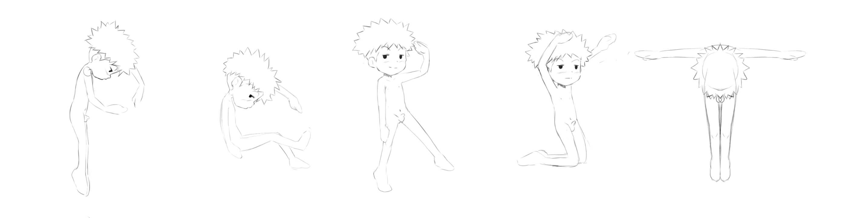 An unfinished commission of a #NakedLittleBoy: it's a nude #shota version of #Koushirou forming the alphabet with his body. I lost contact with the artist and only have these faint sketches, but they were recently requested elsewhere and I want to share them. This is part 1 of 5.