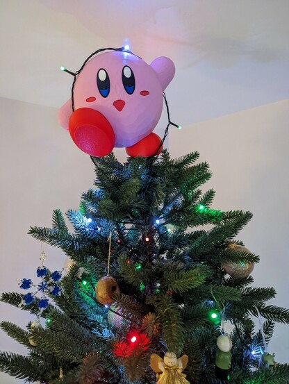 Another year, time for a different tree topper. We've been playing Kirby and the Forgotten Land quite a bit...