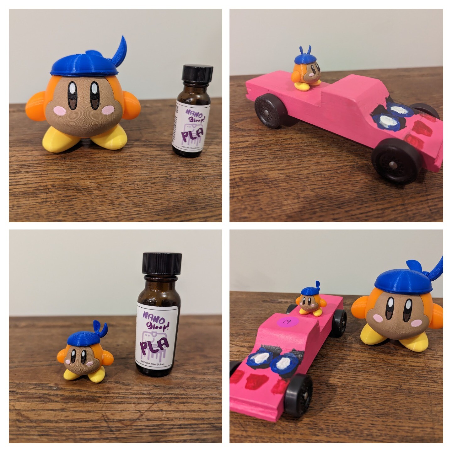 Daughter wanted a Kirby Pinewood Derby Truck. I printed a Waddle Dee at 35% and we glued it on top. (She came in 2nd.)