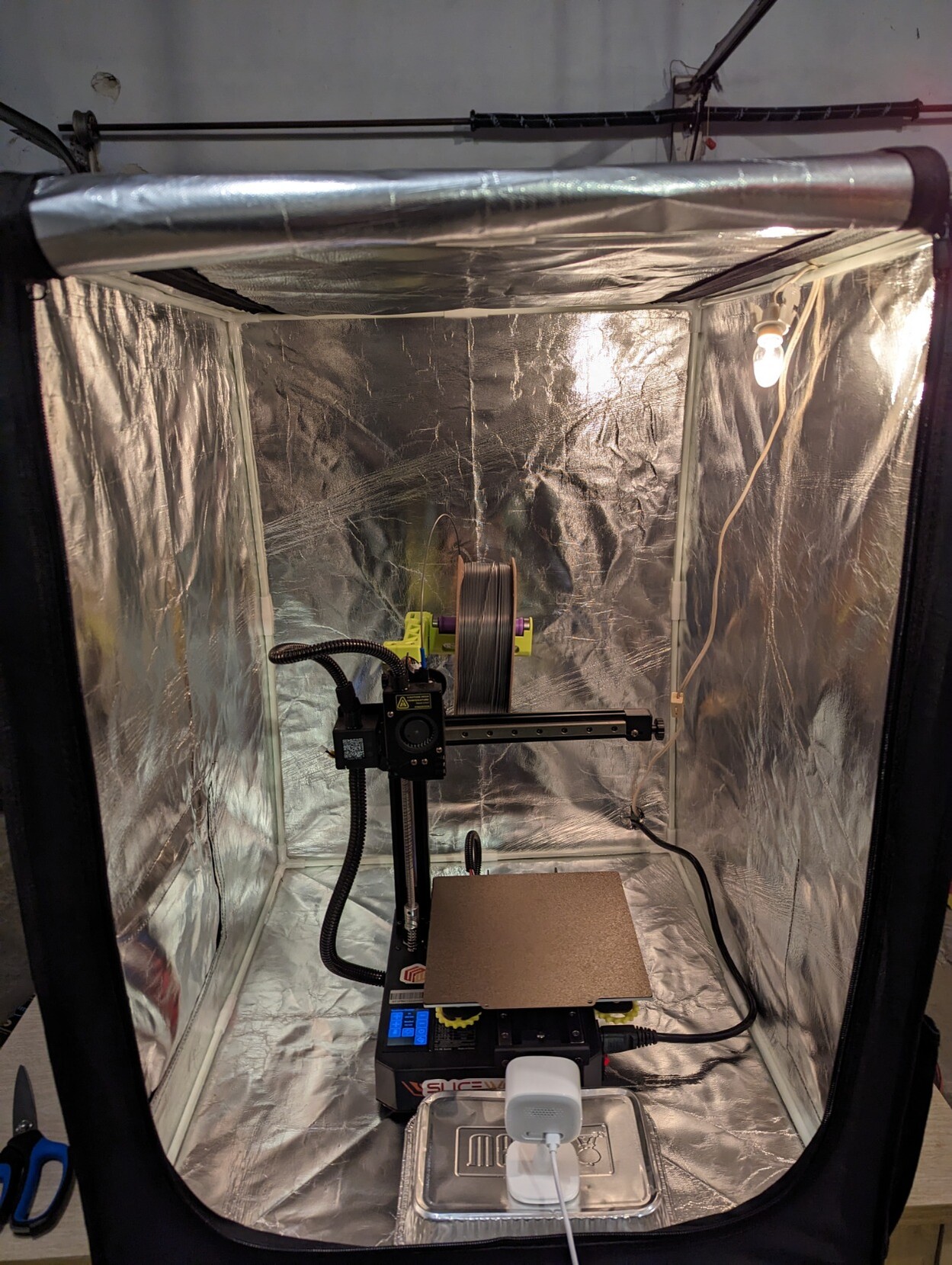 First time printing with ASA. Out in the garage with a silly printer tent and window open. (Still pretty chilly outside.)