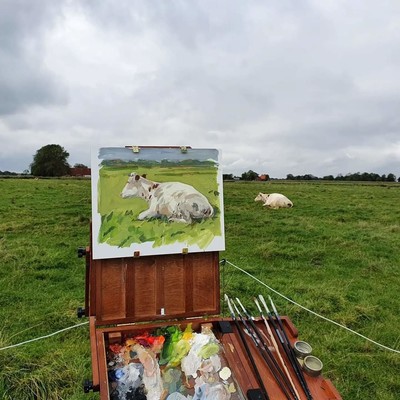 #hofbutenland #kuhaltersheim #pleinair #paintingcows #cows #veganpainting #hartmutkiewert