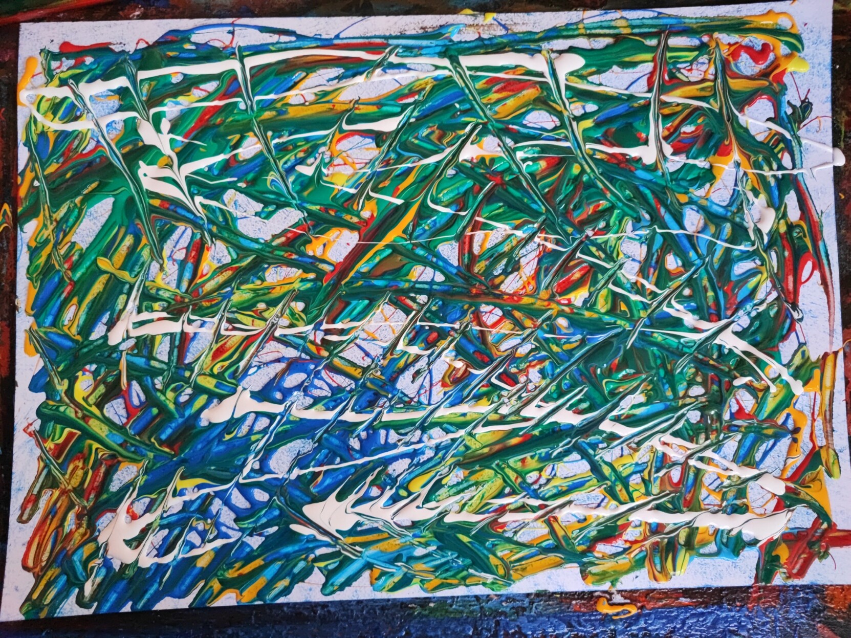 Das Bild habe ich vor sechs Jahren in einer #Kunsttherapie gemalt. Es gab eine Aufgabe, aber die habe ich vergessen. Viele Farben hatten sie da jedenfalls.