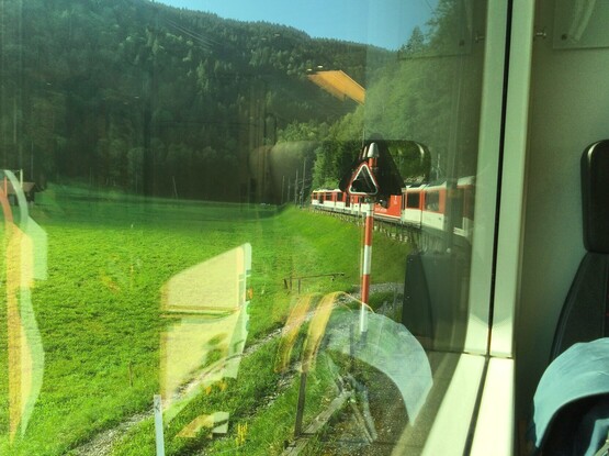 Weiter mit #FensterAuf und #Kurventrööt das Tal hinunter, ab Disentis mit der wundertollen :rhb: 🥰