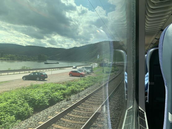 Geen ramen die open kunnen, maar wel met een klassieke intercity van DB langs de Rijn #Kurventrööt.