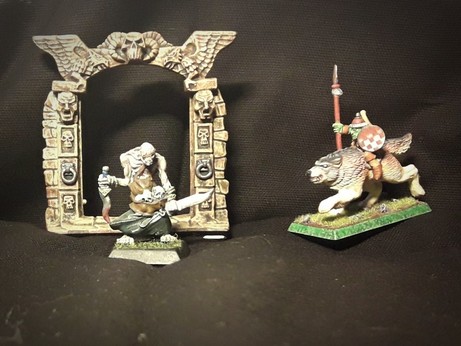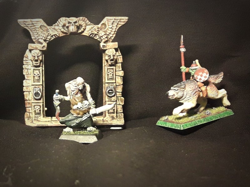 The #GhoulOfAcheron (#RackhamConfrontation mini) thought he escaped the crypt under Le Mont Fichtrement Venteux. Boksi the wolf rider (#BattleMasters mini), last of the #goblin deserters, intends to stop him in the ruins of Amon Saoûle Grâv.