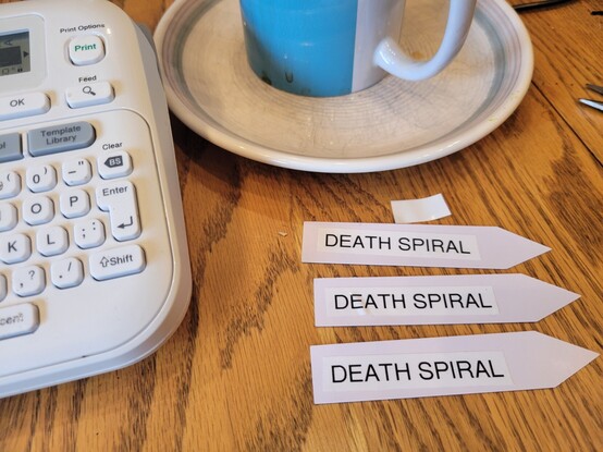 Sitting in the clubhouse, making labels for my chilli seeds as I pot them up...