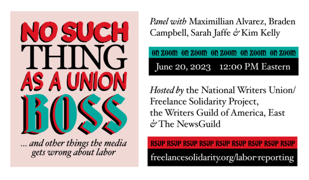 Next week, Tuesday June 20 at 12 PM ET, a panel talk with Sarah Jaffe, @maximillian_alvarez, Kim Kelly, Braden Campbell on a call hosted by FSP, WGAEast, and the NewsGuild.