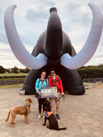 Der Mammutmarsch auf Marathon Distanz ist ein Wettstreit zwischen unseren Willen und Möglichkeiten. @one_and_a_half_labrador @mammutmarsch #blind #bestbuddy #maraton #extremwandern #mammut #blindenführmammut #blindenführhund #labrador #labradoodle #hundesport #motivation