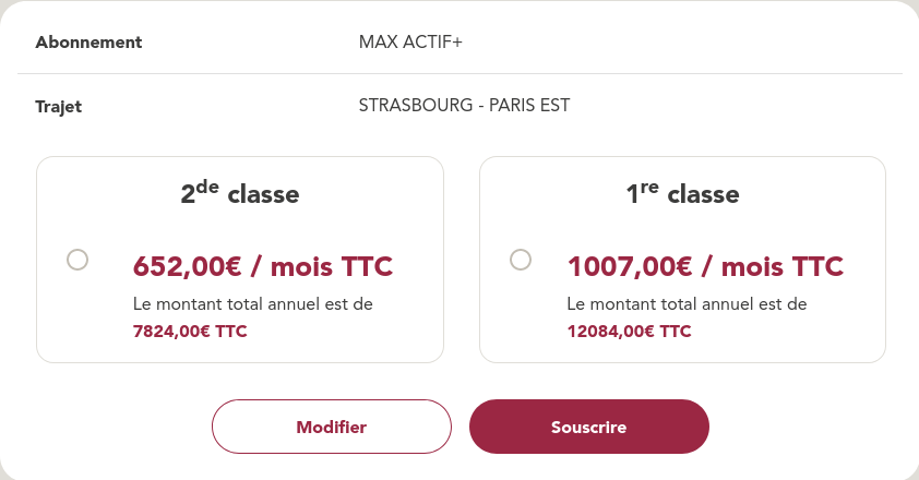 #SNCF #LackGesoffen subscriptions : Ever tried to get a TGV MAX Activ forfait mensuelle ? Only EUR 1007 per month - for only one line.