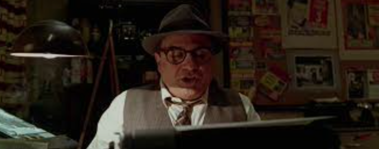 Sid Hudgens: 'It's Christmas Eve in the City of Angels and while decent citizens sleep the sleep of the righteous, hopheads prowl for marijuana, not knowing that a man is coming to stop them! Celebrity crimestopper Jack Vincennes, scourge of grasshoppers and dopefiends everywhere!' Ya like it, Jackie boy?