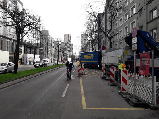#BerlinerStraße Warum sollte die einrichtende Baufirma ihren LKW nicht auf den neuen, bereits freigegebenen verpflichtenden #Radweg stellen, sondern zB auf die Sperrfläche da links? Es war kurz vor Feiierabend- aber trotzdem eine fatale, lebensgefährdende #LaetitiaSituation😳 😱 💥