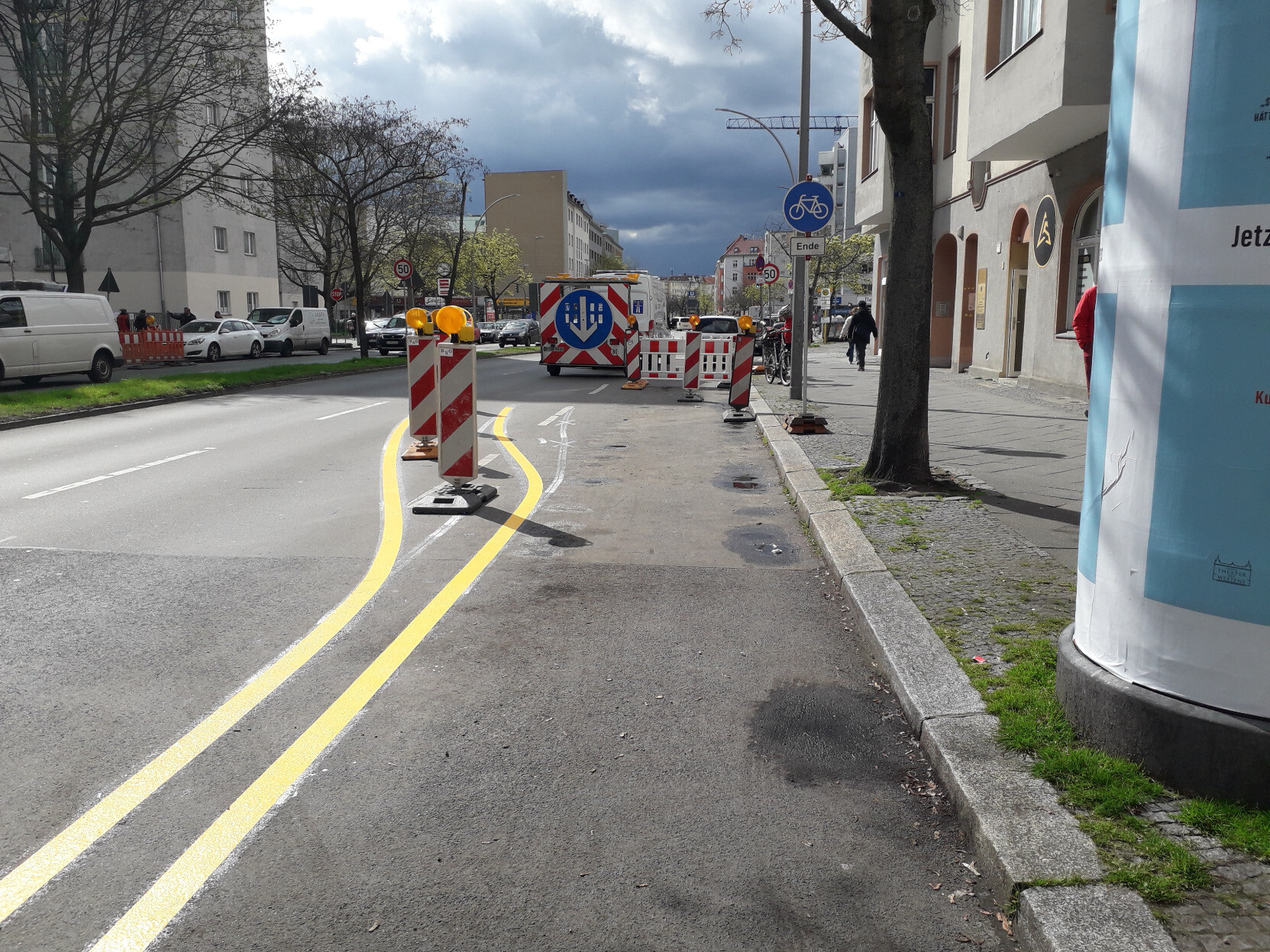 Ich hoffe, die bauen morgen noch mehr, vor allem wirksame Schutzelemente für den neu längs verlauifenden Radweg hin!