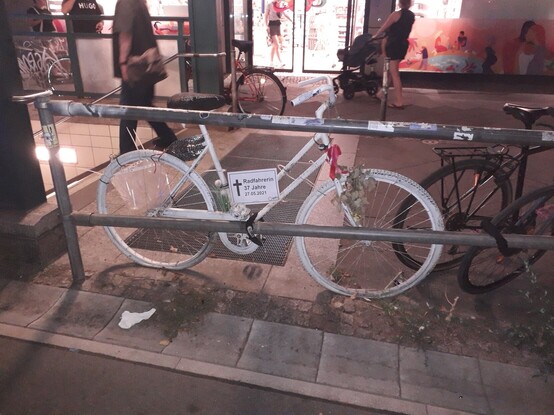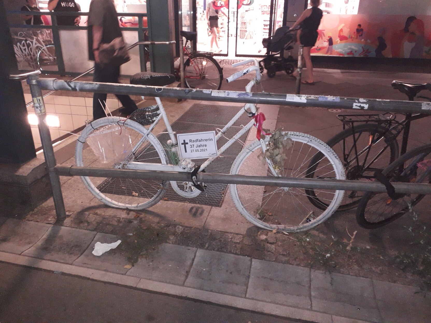 Geisterrad auf der Frankfurter Alllee , #LaetitiaSituation😳😱💥☠ ungeschützer nach links in fette Bundesstraße ausgeleiteter verpfl. Raadweg, der von Bezirk und Senat nicht links geschützt worden war und von einem Geldtransporter ohne Sonderrechte schamlos" nur ma kurz" mivbraucht wurde und das Radly zwang, noch eins weiter nach links zu müssen Der dort fahrende LKW konnte nicht mehr rechtzeitig anhalten....
