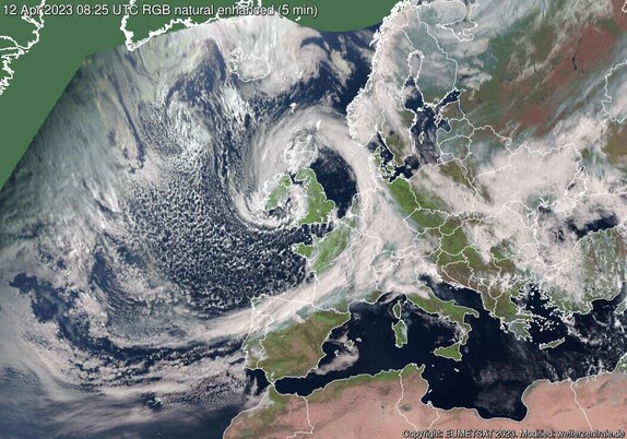 Weetje: een mooie krul is typisch voor een oude, opvullende depressiekern. Bij jonge, zware stormdepressies is de krul op de satellietbeelden vaak veel minder uitgesproken, omdat die eenvoudigweg nog niet de kans gehad heeft om zich te vormen.