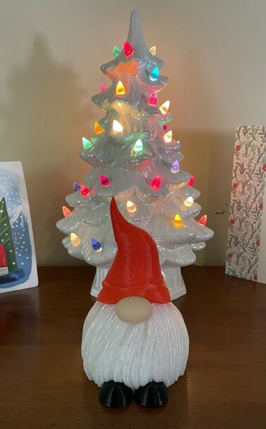 Printed several gnomes for gifts. They have a cavity inside you can access by removing it’s hat (nose attached). You can put items inside (I put Lakrids, Danish licorice, inside) or you can put a battery powered votive in it to light it as decoration.