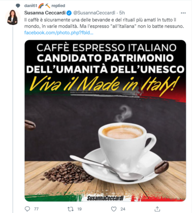 Cara Ceccardi, il caffé è patrimonio culturale di quella terra baciata dal sole e dal mare che gli ultras del tuo partito volevano far distruggere dal vesuvio, dove vive gente che il capo del tuo partito ha chiamato colerosi e terremotati puzzolenti. #lalegatifrega