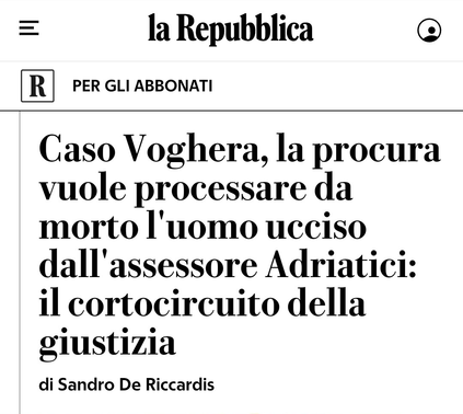 Effetti dell'influenza sull'ambiente giudiziario di Voghera di un ambiente politico fascioleghista necrofilo, che fa soldi e carriera criminalizzando chi muore in mare affogato da una legge leghista e chi muore in strada sparato da un leghista. #lalegatifrega