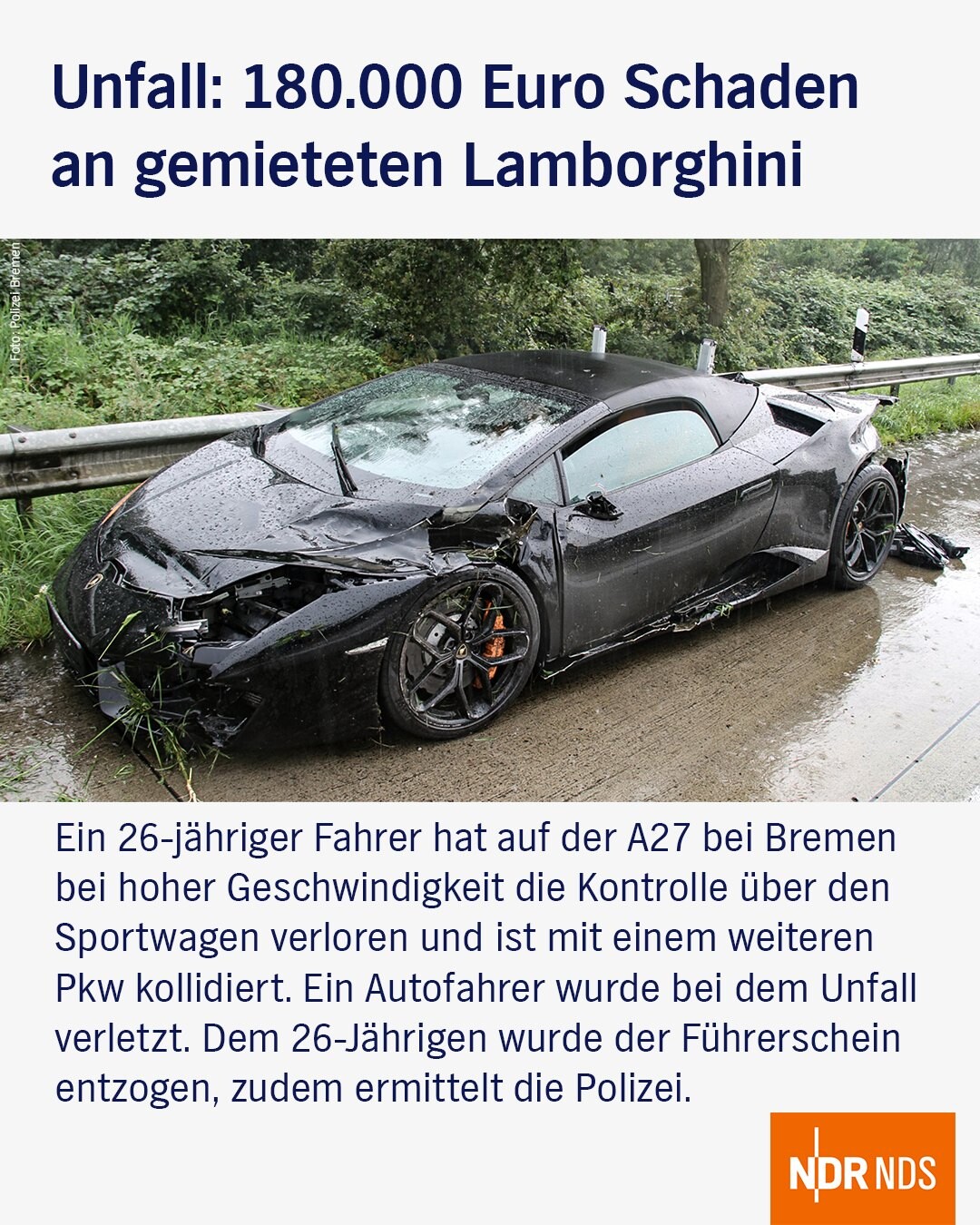 Mit einem gemieteten Lamborghini hat ein 26-Jähriger einen Unfall auf der A27 bei Bremen verursacht.🚗 🚨