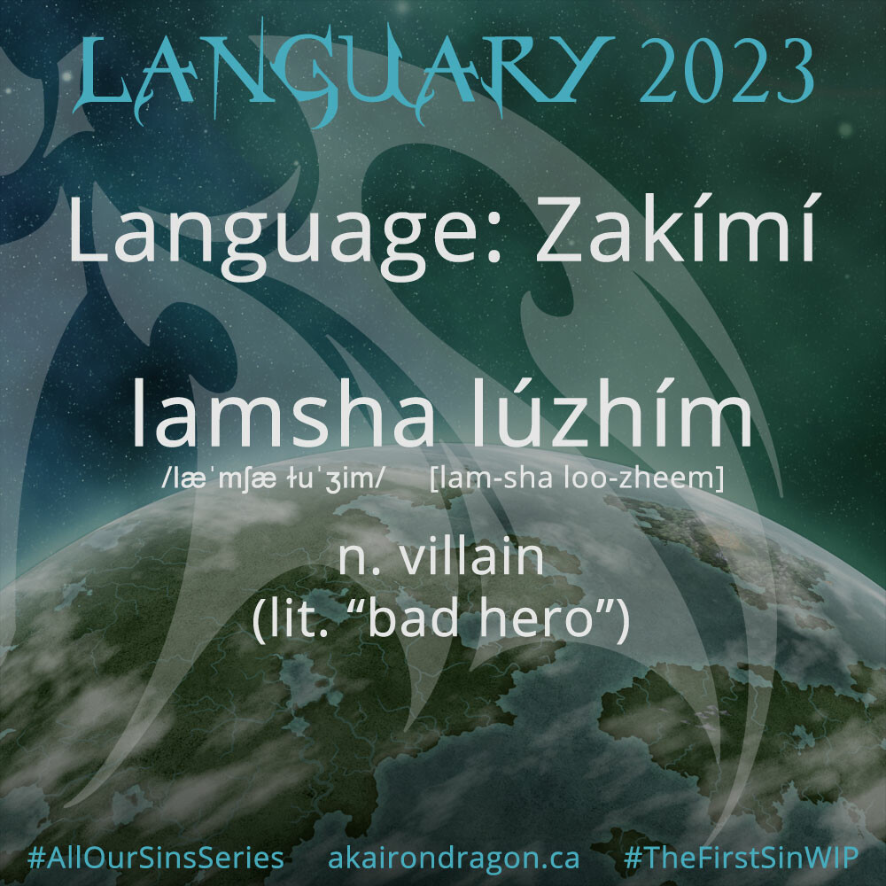 Today's #languary word is a favorite from the årdrakin language. "Lamsha lúzhím" is frequently translated as "villain" but its literal meaning is "bad hero".