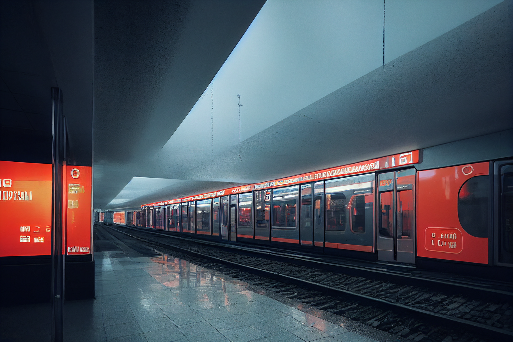 #länsimetro jatke aukeaa huomenna. Sen kunniaksi #midjourney tekoälyn avulla tehty kuva kauniaisten metroasemalta noin vuodelta 2100 #aiart
