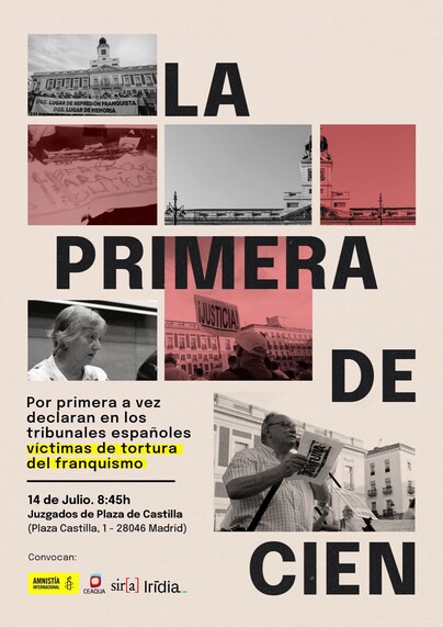 El viernes acompañaremos a Julio y Rosa a declarar por #LaPrimerade100, la 1a querella por torturas del franquismo investigada en el Estado español #JusticiaEsMemoria