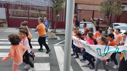 Argazkian herriko haur eta gaztetxoak eguerdian ospatu den Korrika txikian.