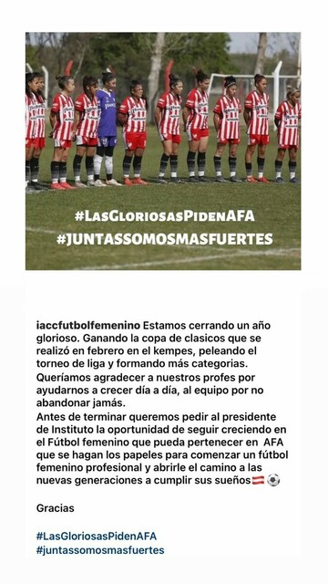 Las jugadoras de #Instituto Cba quieren jugar en AFA,y quienes ya pasamos por esa lucha, con las @OMatadoras@twitter.com sabemos que la solidaridad gremial futbolera no puede faltar en estos casos.
