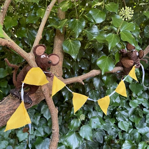 Minimus and Minima are hanging up a linea (string) of vexilla flava (yellow flags) on the rami (branches) of the morus (mulberry tree). Are they planning a festum casearium (festival of cheese)?