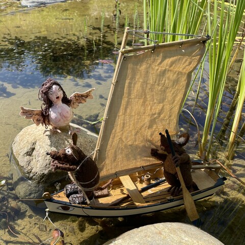 Minimus is Ulixes (Odysseus), tied to the malus (mast) so he can hear the carmen Sirenis (the Siren's song) without jumping overboard. Minima is one of his nautae (sailors), her ears obturatas (plugged) so she can row away from periculum (danger). The Siren is not impressed!