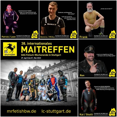 Die Wahl des Mr Fetish Baden-Württemberg wird im Rahmen des Maitreffen des LC Stuttgart e.V. am 30.04.2023 im Kursaal, Bad Cannstatt stattfinden.