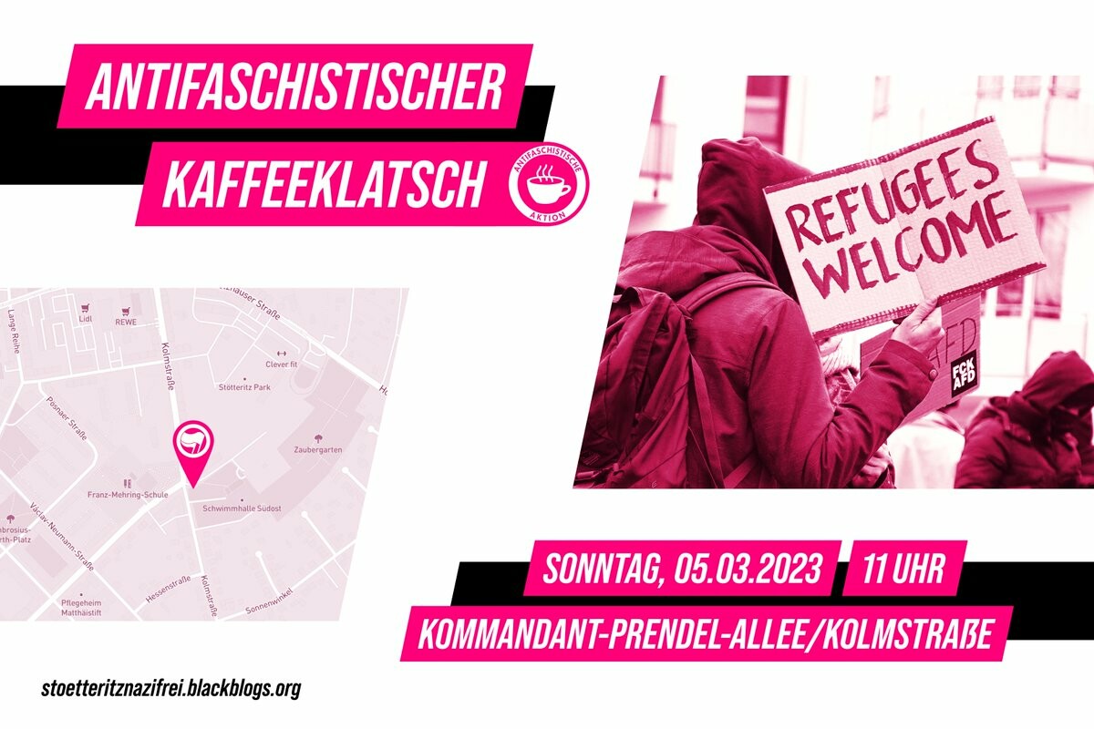 Kommt mit uns und Leipzig nimmt Platz zum antifaschistischen Kaffeeklatsch in #Stötteritz! #le0503