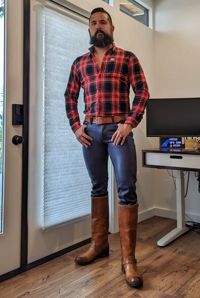 Taking advantage of the cooler days to go through my leather closet. Today's work from home look consists of my Langlitz Competition Breeches, Dehner Bal-laced Boots and leather cowboy hat.