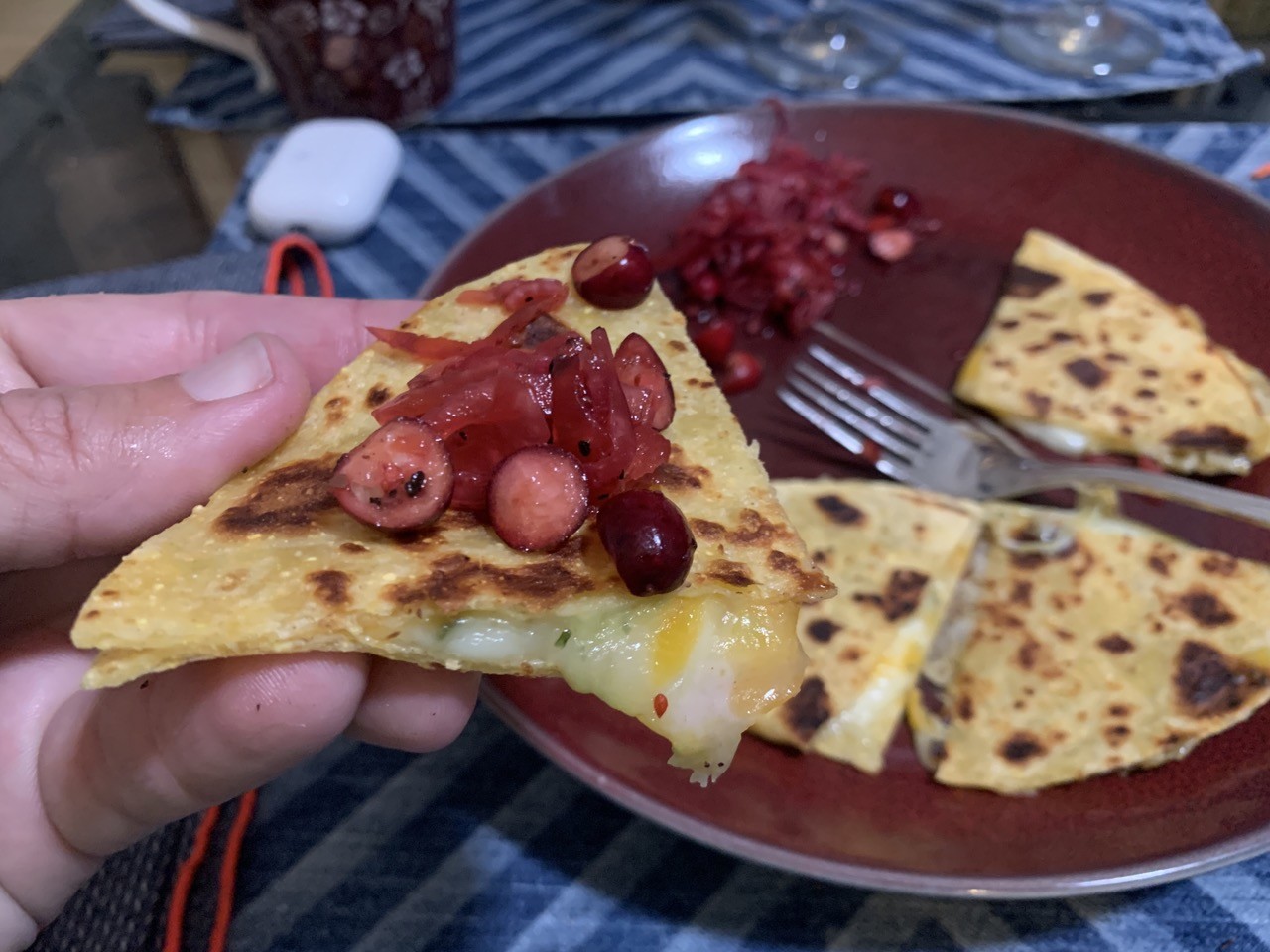 This might just be the eggnog talking, but pickled cranberries are kind of dope as a quesadilla topping. #leftoverturkey #leftoverFood