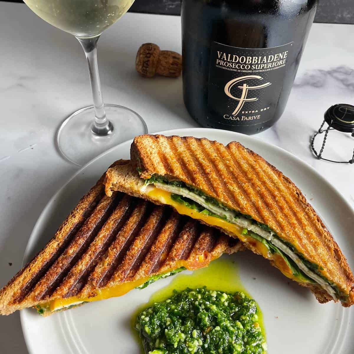 https://cookingchatfood.com/turkey-pesto-panini/ #leftoverturkey #panini #recipeoftheday #Prosecco #winepairing