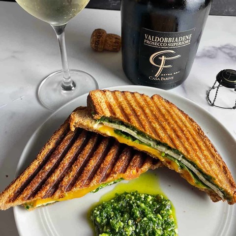 Our Turkey Pesto Panini is another way to use that leftover turkey! Gets even better with some Prosecco Superiore.