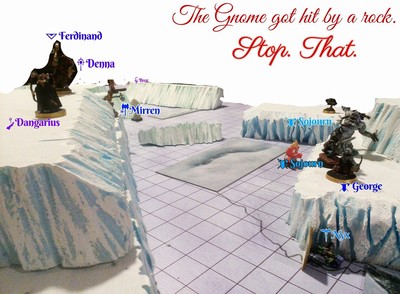 So some enterprising #yeti decided to roll a 20 hurling boulders at us. #Nyx is (a) unconscious (b) not amused. On the other hand, Blake's Seven went on for two seasons without Blake so I guess the #gnomesfools can make it without Nyx. #DnD #Icewinddale #legacyofthecrystalshard
